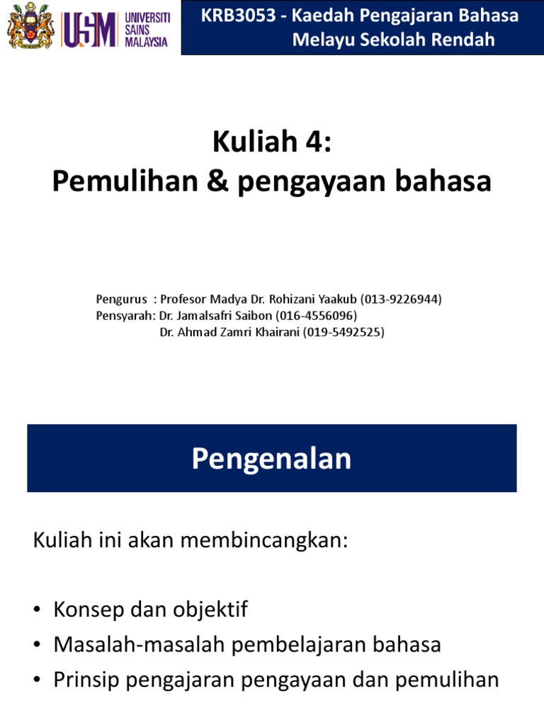 Kuliah 4 Pengajaran Pemulihan Dan Pengajaran Bahasa Edited Pdf
