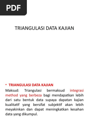 PDF Metodologi Pengumpulan Data dalam Penyelidikan Kualitatitif. Untuk memperoleh kebenaran informasi yang handal dan gambaran yang utuh mengenai informasi tertentu peneliti bisa menggunakan. Triangulasi bermaksud kaedah integrasi yang berbeza bagi mendapatkan lebih dari satu bentuk data supaya dapatan kajian kualitatif yang bersifat subjektif akan lebih meyakinkan dan dapat meningkatkan kesahan data yang dikumpul.