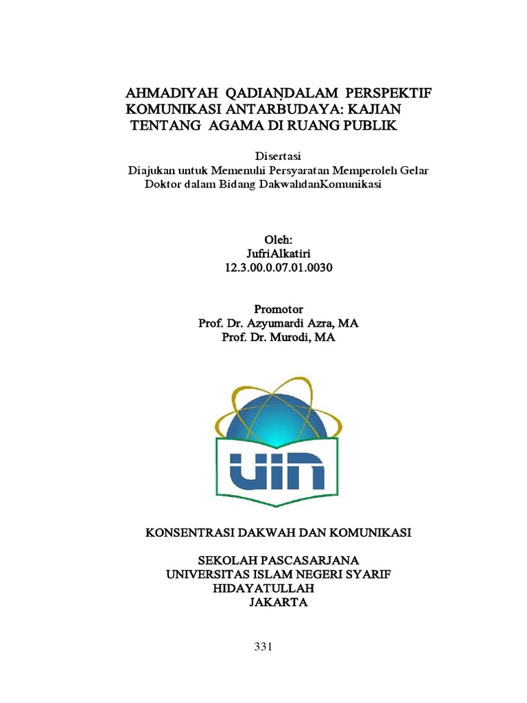 Ahmadiyah Qadian Dalam Perspektif Komunikasi Antarbudaya Kajian Tentang Agama Di Ruang Publik Pdf
