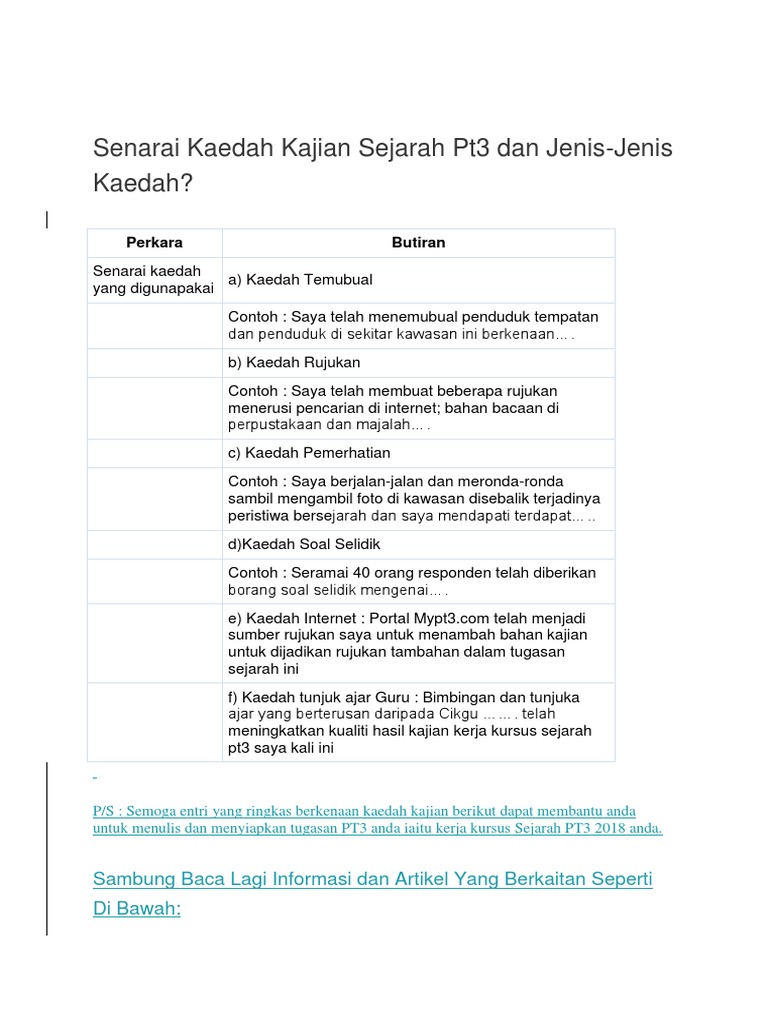 Senarai Kaedah Kajian Sejarah Pt3 Dan Jenis Pdf