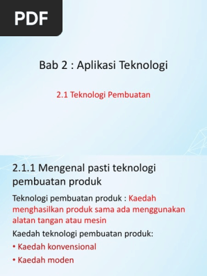 1 Terdapat dua kaedah teknologi pembuatan produk iaitu _____ dan _____. BAB 10DALAM KIMIA PERUBATAN DAN KESIHATAN ANDA AKAN BELAJAR TENTANG. Penggunaan bahan adalah lebih efisien.